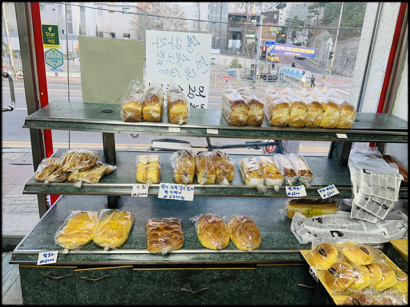 그리고 그 안에서 오랫동안 같은 자리를 지켜온 빵들.